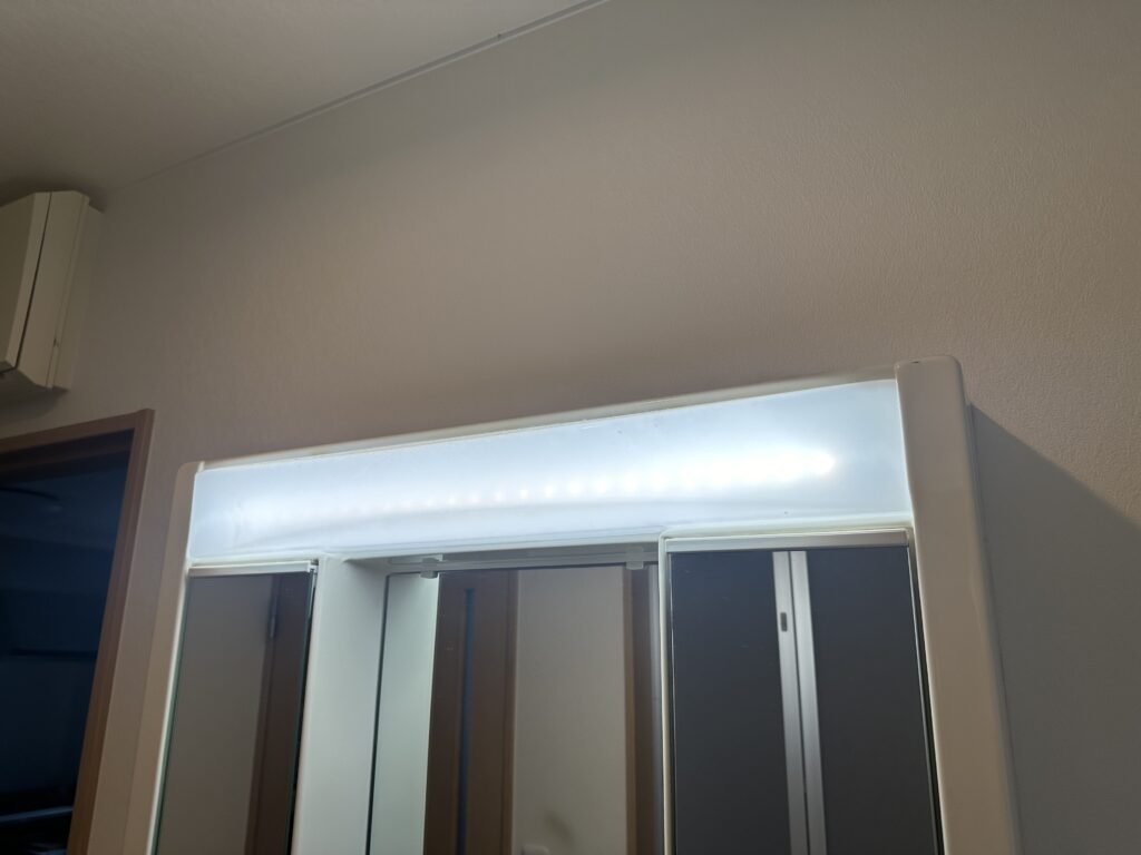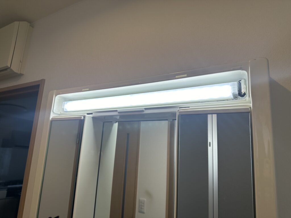 部屋で使っている照明器具は全てLED照明ですが、洗面化粧台の照明が蛍光灯だった為、LED照明に
