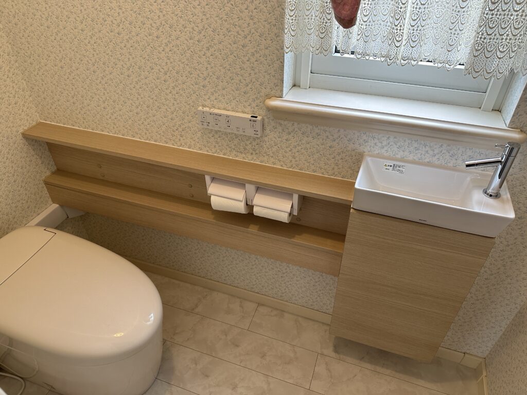 お客様から、手洗い付き便器からタンクレス便器にして手洗いを別に取付したいと、ご依頼が
